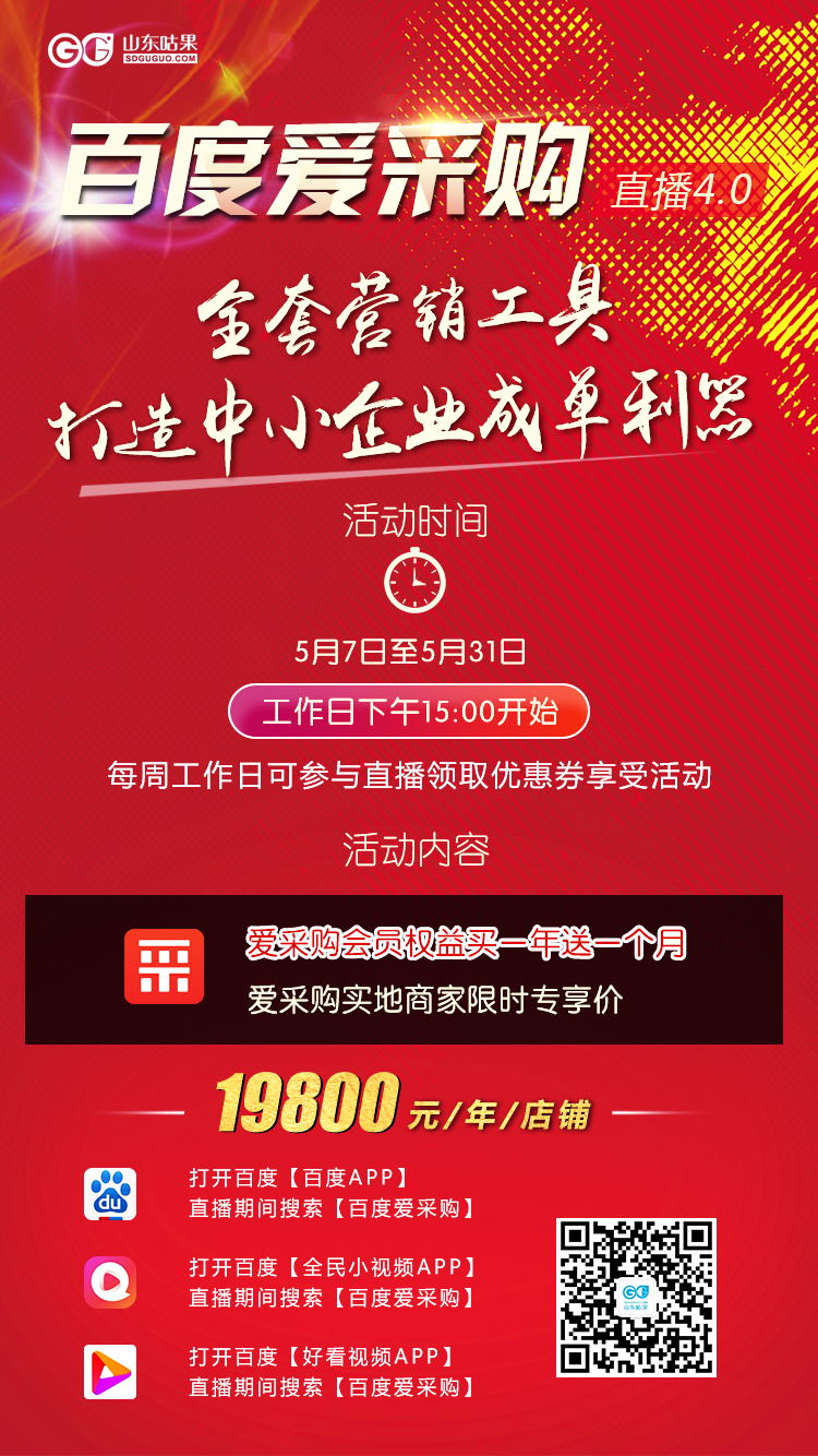 观看地址:手机百度APP、全民小视频APP、好看视频APP搜索『百度爱采购』即可进入直播间,点击关注【百度爱采购】持续了解直播信息。